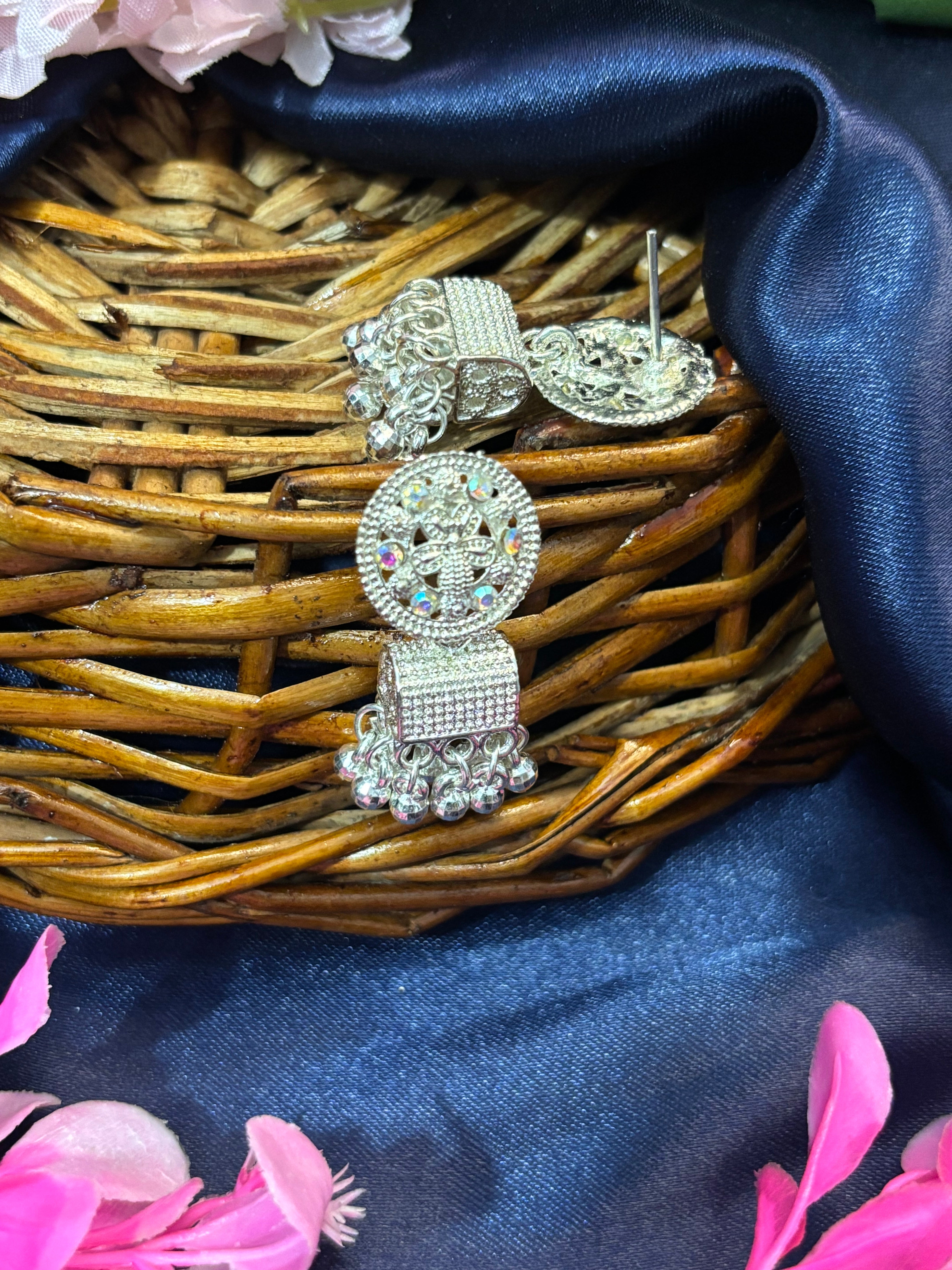 SHYAMZAN Silver Beaded Chandelier Earrings Silver Women Jewelry Gift OrnateDesign SYZ00024